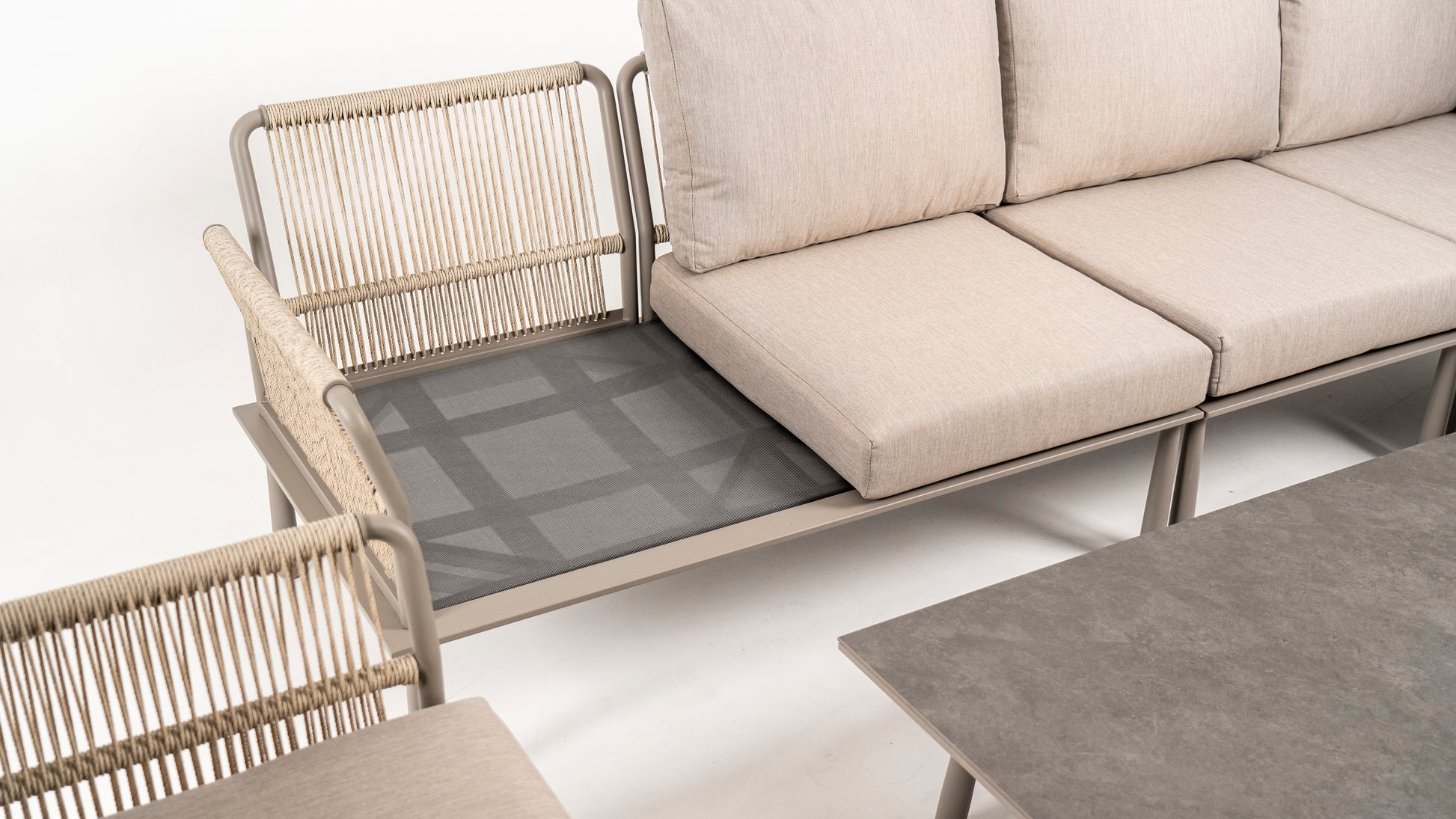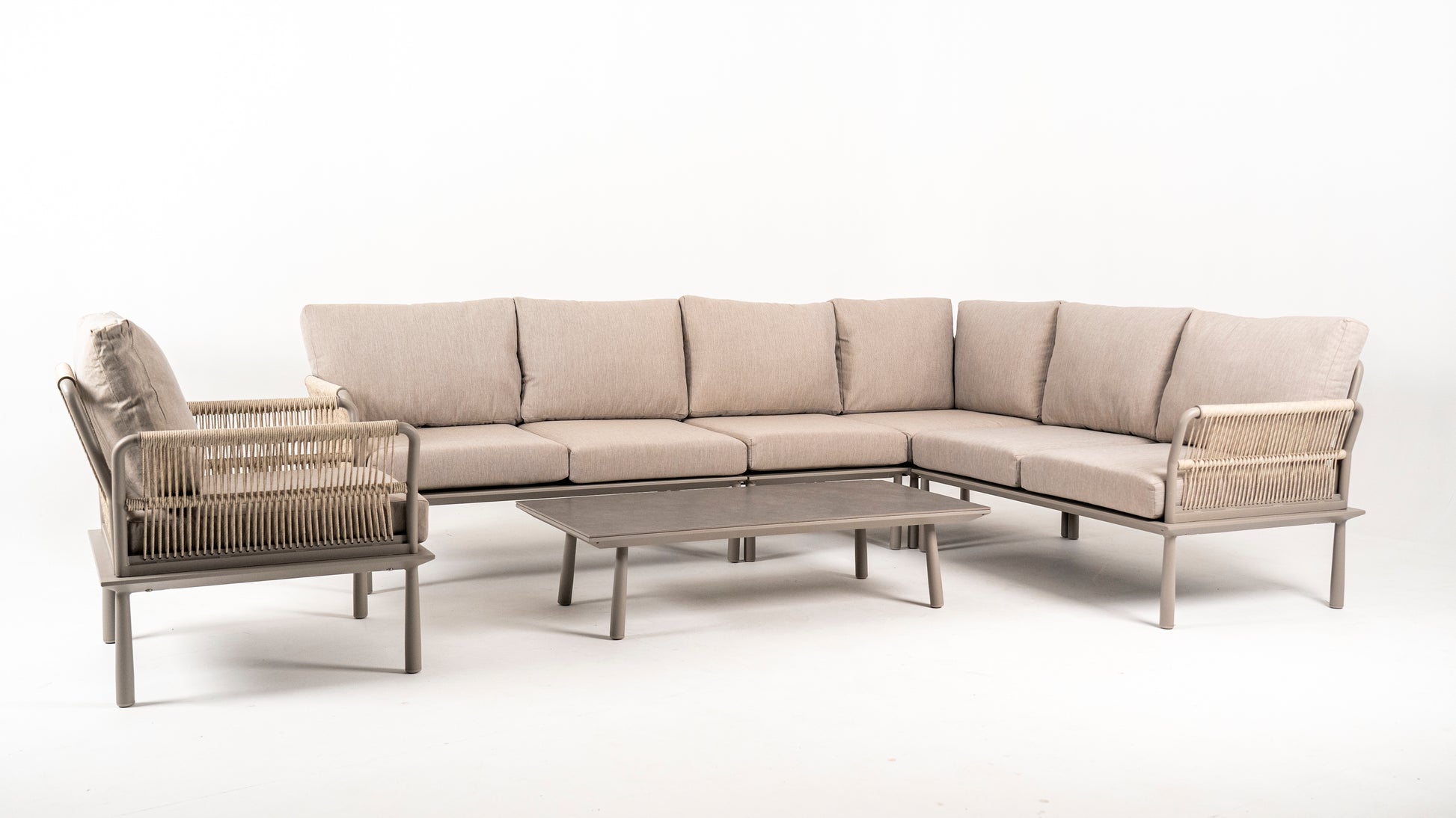 Hoek Loungeset - Trino - Aluminium - Datho Outdoor - Beige - met tussenstuk